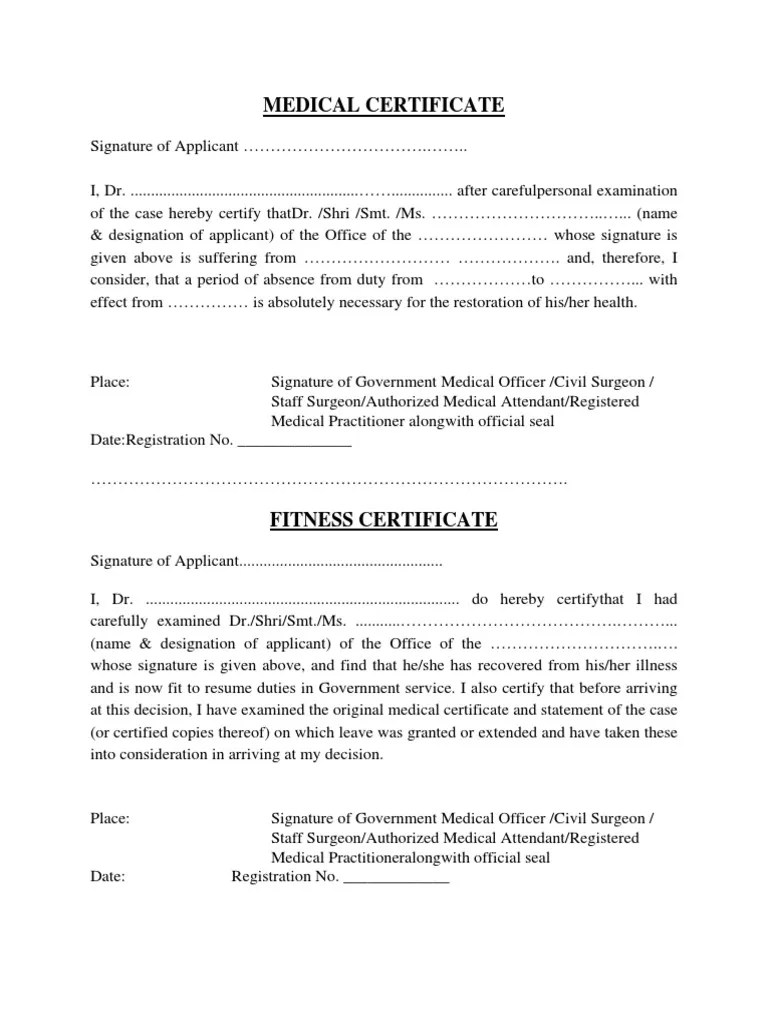 If you are looking for the general medical certificate pdf, then you are at the correct place.they are several times when individuals need to prove their medical fitness to any school, college, or other organization to enroll under them... Medical certificate form doctor template. General medical fitness certificate format for school, college & new job download in word & pdf form. If you are looking for the general medical certificate pdf, then you are at the correct place.they are several times when individuals need to prove their medical fitness to any school, college, or other organization to enroll under them. It refers to a 'sick note' which tells you about the health condition of an employee is not good.. Medical certificates issued by private medical practitioners will not be accepted.) name.